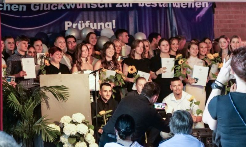 Am Dienstag, dem 25.06.24, verabschiedete das Berufskolleg an der Lindenstraße die Klasse FP221 als erste Klasse der FOS Polizei in Köln. Im Rahmen dieses Pilotprojekts des Landes NRW erhalten junge Menschen schon mit der Fachoberschulreife, dem mittleren Schulabschluss nach Klasse 10, einen Einstieg bei der Polizei. Möglich wird das durch eine enge Zusammenarbeit zwischen Schule und Polizei. An einem Berufskolleg erhalten die Schülerinnen und Schüler die Fachhochschulreife, in einem einjährigen Praktikum bei der Polizei bekommen sie wichtige Einblicke in die Praxis – verbunden mit einer vorläufigen Einstellungszusage.