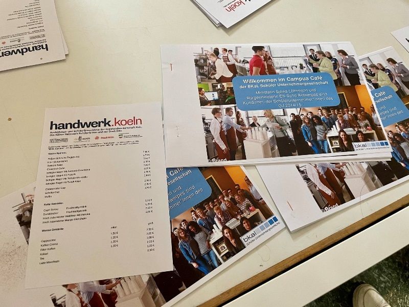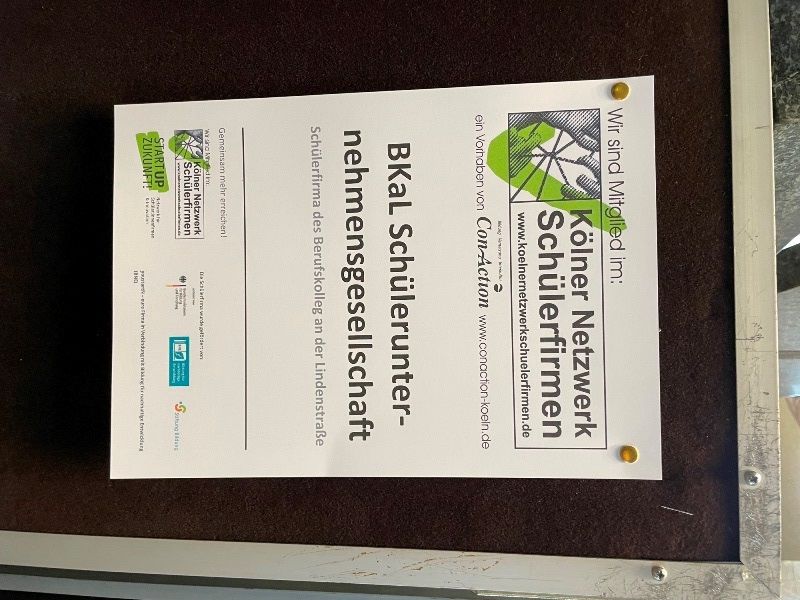 Auf der Ausbildungs- und Schülerfirmenbörse der Kreishandwerkschaft Köln überreichte uns Herr Bürgermeister Ralf Heinen eine Urkunde für unser besonderes Engagement in der BKaL Schüler Unternehmergesellschaft.