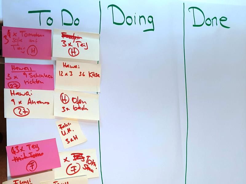 Unsere Kolleginnen und Kollegen bildeten sich am 03.11.2022 in Teil I der Fortbildung spielerisch im Pizza backen fort, um Scrumban als agile Methode für den Unterricht kennenzulernen. Scrumban vereint das Kanban-Board und Elemente aus Scrum. Ein theoretischer Input sowie Beispiele und Ideen für den agilen Unterricht rundeten die 1,5-stündige hybride Fortbildung ab.