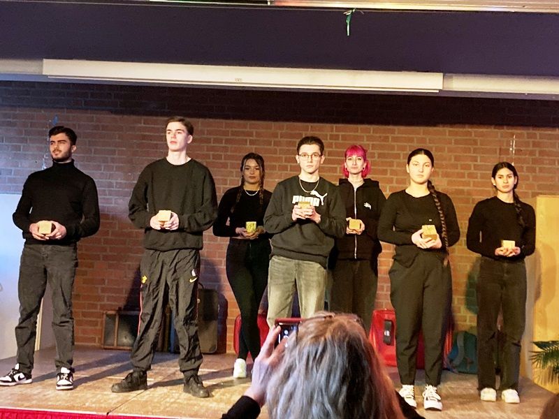 Am Montag, dem 13.02.23, führten die Schülerinnen und Schüler des Wirtschaftsgymnasiums am Berufskolleg an der Lindenstraße Theaterstücke auf, die von den Lebensgeschichten ihrer jüdischen Vorgängerinnen und Vorgänger inspiriert waren.