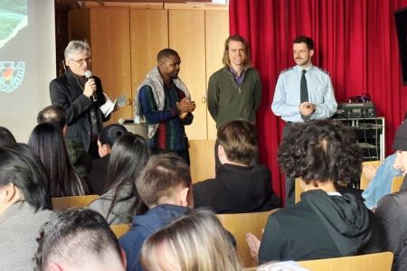 Die voll besetzte Aula des Berufskollegs an der Lindenstraße (BKaL) war am 3. April 2025 Schauplatz einer bewegenden Veranstaltung zum Thema „Rohstoff-Fieber – unser Konsum, unsere Sicherheit und der Krieg im Kongo“.
