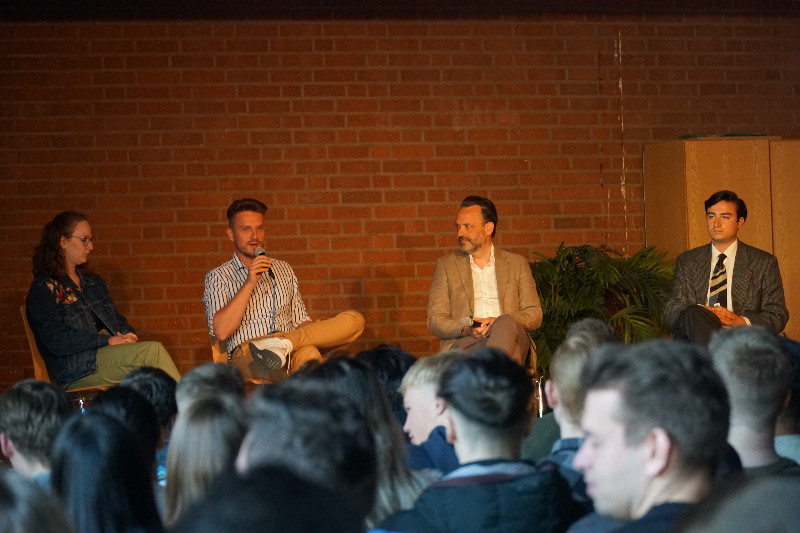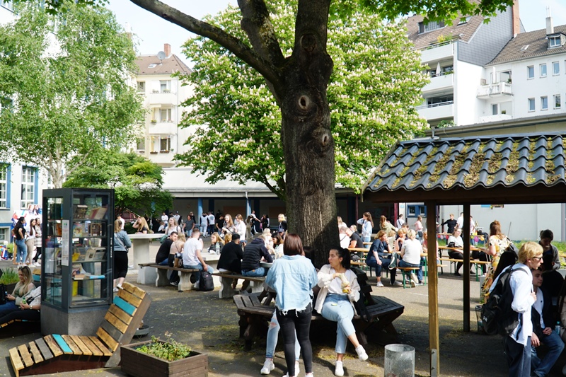 Am 10. Mai 2022 feierte das Berufskolleg an der Lindenstraße den Europatag in Form eines großen Projekttages mit über 30 verschiedenen Veranstaltungen, die über den gesamten Gebäudekomplex in der Lindenstraße 78 verteilt stattfanden. Von der Diskussionsrunde mit Kölner Landtagskandidatinnen und -kandidaten, über Expertenvorträge zur Geldpolitik der Europäischen Zentralbank bis hin zu Quizspielen, französischem Boule und spanischen Leckereien reichte das Spektrum der Angebote. Diese hatte die agile Projektgruppe Europatag des BKaL mit Schülerinnen und Schülern sowie Expertinnen und Experten auf die Beine gestellt. Und auf den Beinen schien auch das gesamte Berufskolleg zu sein. Auf dem Schulhof herrschte reges Treiben an den Spiel- und  Essensständen bei entspannter Schulfestatmosphäre; in den Klassenräumen und in der Aula versammelte man sich bei Vorträgen und Diskussionen rund um europäische Themen.