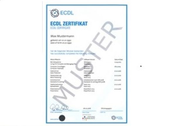 - Zertifizierung von EDV-Kenntnissen über unterschiedliche Module (Computer- und Online-Grundlagen, Tabellenkalkulation, PowerPoint, Datenschutz/Datensicherheit …).